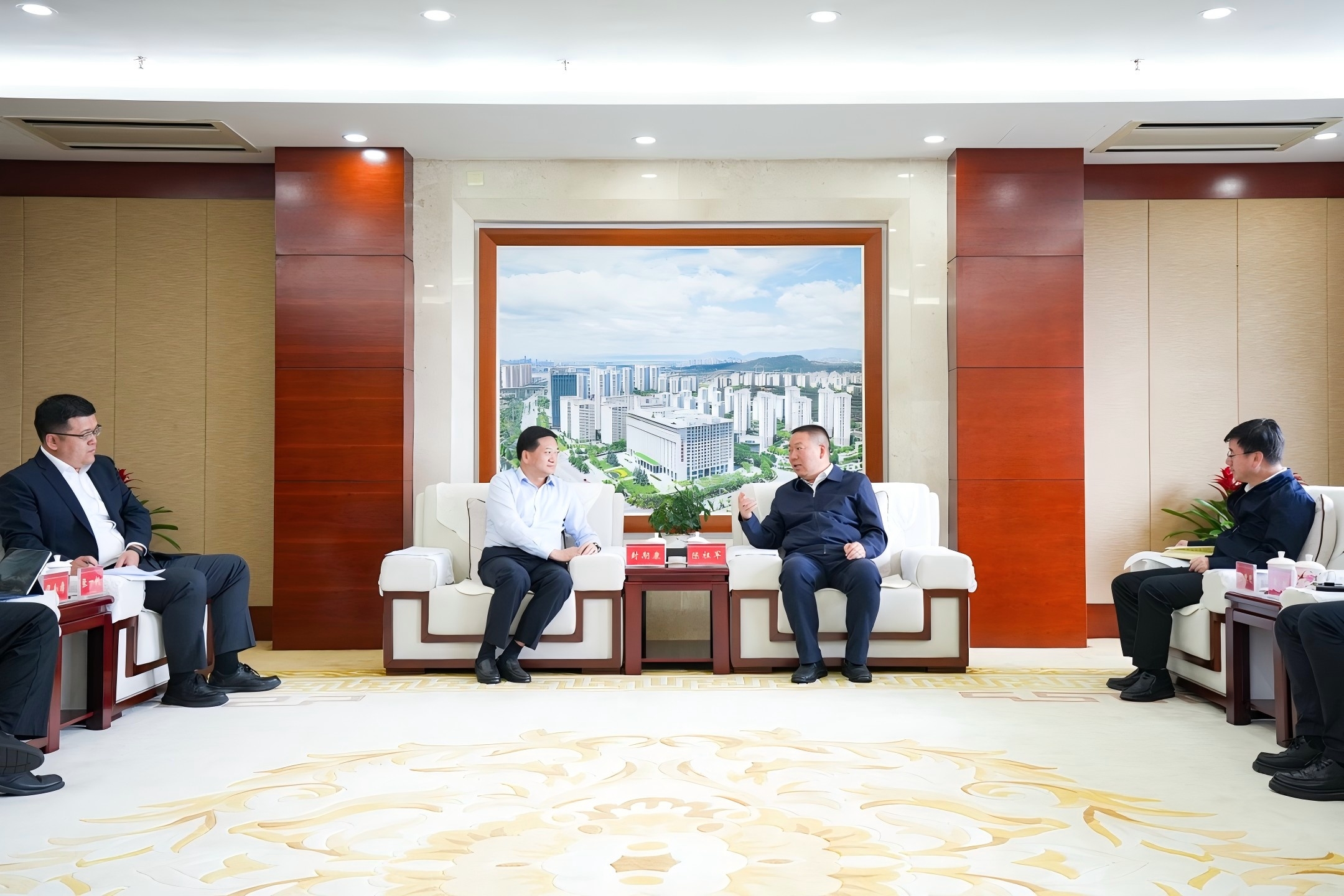 10月18日,昆明市委副書(shū)記、市長(zhǎng)楊承新率隊(duì)到訪集團(tuán),與集團(tuán)公司黨委書(shū)記、董事長(zhǎng)陳祖軍,黨委副書(shū)記、副董事長(zhǎng)、總經(jīng)理陳宙翔座談,雙方圍繞深化全方位戰(zhàn)略合作、推進(jìn)重點(diǎn)領(lǐng)域項(xiàng)目建設(shè)、攜手共謀高質(zhì)量發(fā)展等內(nèi)容進(jìn)行深入交流并達(dá)成一致共識(shí)。昆明市副市長(zhǎng)張彥、梁崑、陳江,滇池度假區(qū)黨工委書(shū)記、市發(fā)展改革委主任郭穎,集團(tuán)公司黨委委員、副總經(jīng)理仝德剛,